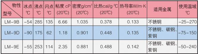 LM-9系列冰河冷媒由多官能團有機物改性而成,外觀為淺色液體,不溶于水,可燃。具有粘度低、揮發(fā)性小、防銹性好、化學(xué)性質(zhì)穩(wěn)定等特點。
