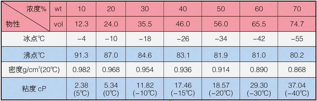 該系列產(chǎn)品具有使用溫度低、粘度小、比熱大、導(dǎo)熱系數(shù)高、載冷能力強等優(yōu)點。對碳鋼、不銹鋼、紫銅等金屬防銹性能優(yōu)良。在不同濃度條件下,可以在-80℃~常溫的溫度范圍內(nèi),作為工業(yè)載冷劑使用。根據(jù)工藝溫度要求與純凈水混合,稀釋成適當濃度后應(yīng)用。其中: